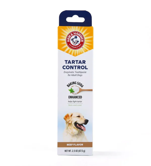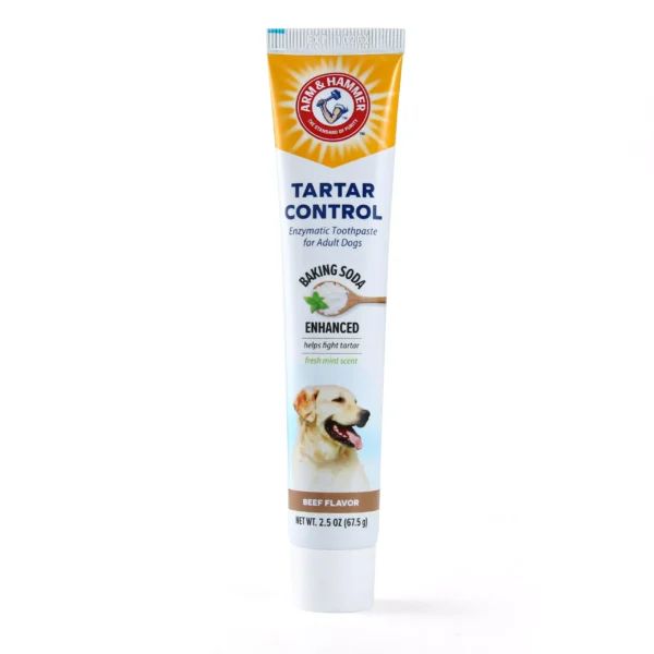 Keep your dog’s teeth clean and tartar-free with the help of Arm & Hammer Tartar Control Enzymatic Toothpaste for Dogs. This toothpaste features beef flavor your dog will love and a fresh mint scent you’ll be pleased with. Enhanced with baking soda, it is a great way to promote better dental health in your furry friend.