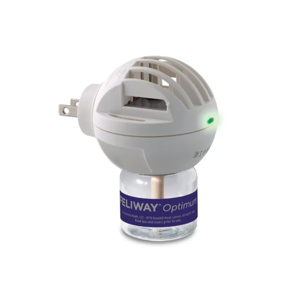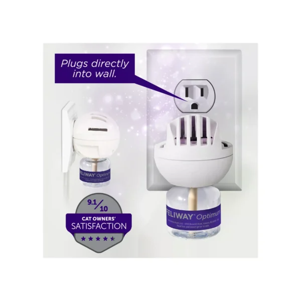 FELIWAY Optimum is a new pheromone discovery, and the best FELIWAY answer to reduce the most common signs of stress. This diffuser can reduce scratching, urine spraying, tension and conflicts between cats, fears, and reactions to changes