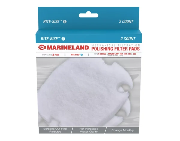 Marineland Polishing Filter Pads support mechanical aquarium filtration for increased water clarity. The polishing filter pad acts as a water polisher, screening out fine particles, dirt and debris. The pads fit Marineland C-Series and Magniflow 160, 180, 220 and 250 Canister Filters and are compatible with Marineland Rite-Size T. Each pack contains 2 polishing filter pads.