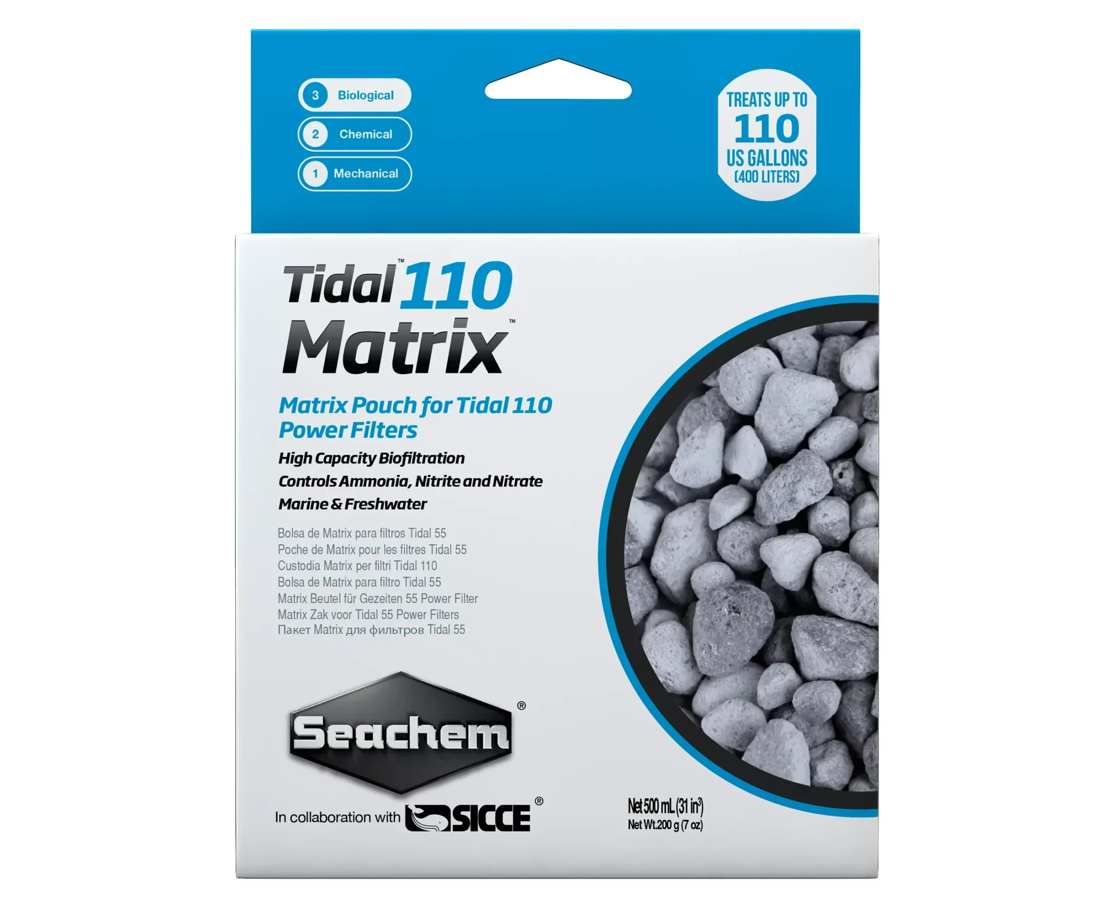 Tidal 110 Matrix – Matrix Pouch High Capacity Biofiltration. Controls, Ammonia, Nitrite and Nitrate. Marine & Freshwater