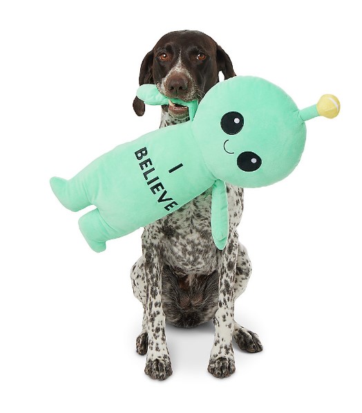 Your dog will love the time it spends playing with this Thrills & Chills Alien Dog Toy. This oversized toy comes in the form of a spooky space alien, and keeps dogs entertained, active and engaged with the playful squeaking sounds it makes when played with. Only at PetSmart.