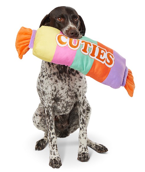 Your dog will love the time it spends playing with this Thrills & Chills Candy Dog Toy. This oversized toy comes in the form of a Halloween candy classic, and keeps dogs entertained, active and engaged with the playful squeaking and crinkling sounds it makes when played with. Only at PetSmart.