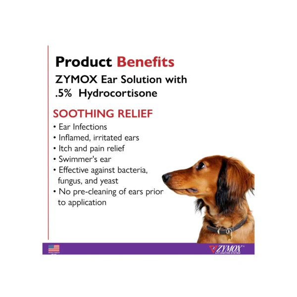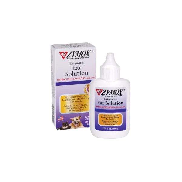 Veterinarian recommended. ZYMOX Ear Solution with 0.5% hydrocortisone offers relief from ear infections on all animals including dogs and cats of any age. TIts